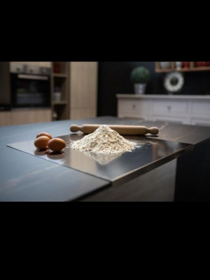 GI Metal heeft met de Amica Line een residentiële lijn op de markt gebracht.Dit multi-purpose werkblad in geborsteld RVS tovert je tafel om in een ide..
