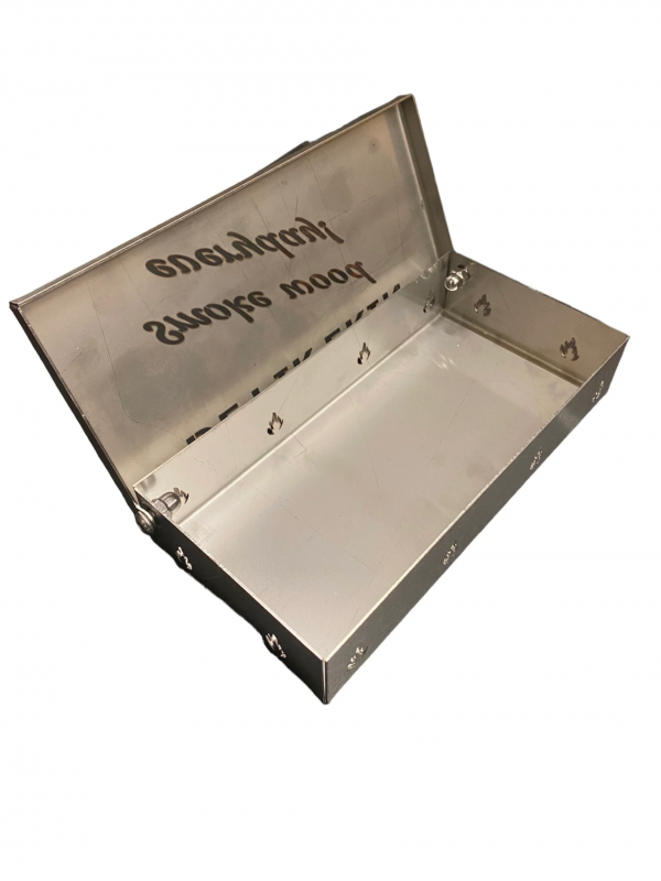 Vul deze smokebox met houtsnippers en zet deze met gesloten deksel rechtstreeks op de kooltjes of op je gasbrander.