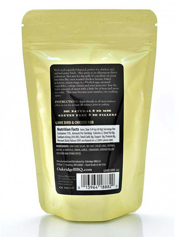 - Model: Oakridge - Game Bird & Chicken Rub 6oz