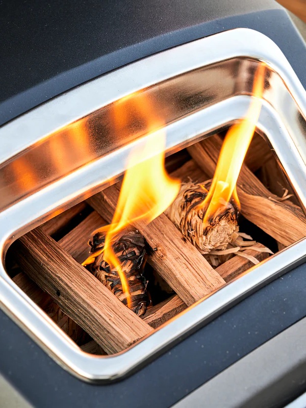 - Brandstof: hout en/of houtskool, optioneel met gasbrander